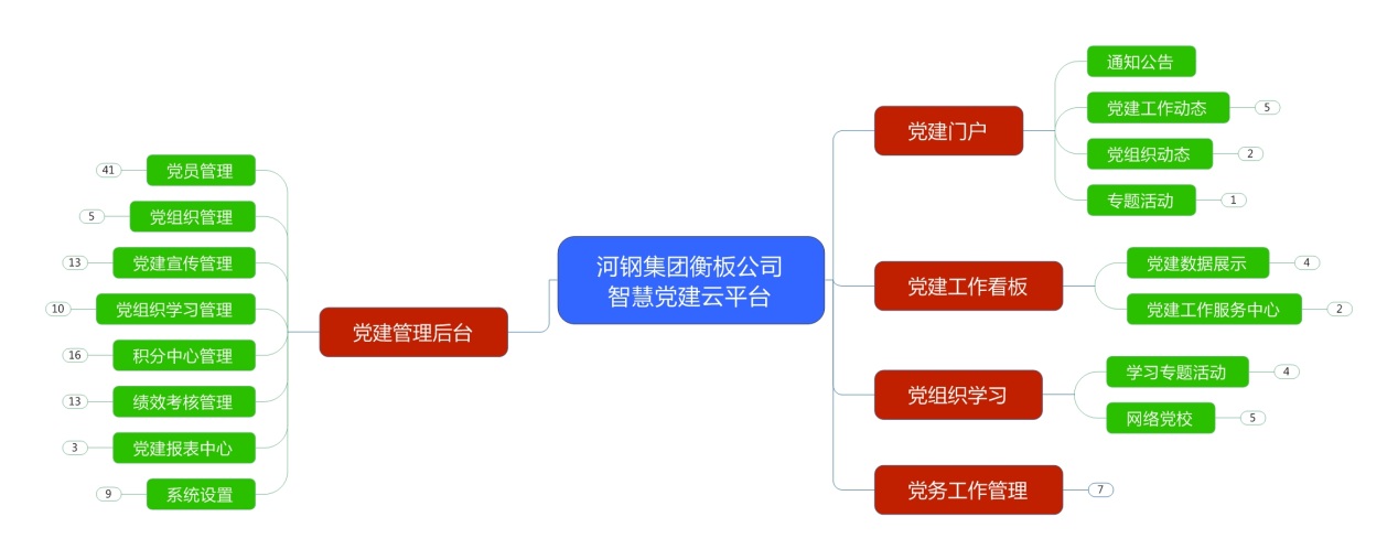 按照双方前期沟通情况,并结合河钢集团衡板公司的实际情况,本次开发的党建云平台使用PC端和微信端,主要实现以下内容: