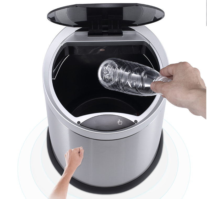 智能垃圾桶简约大气的设计风格,不论你家中是什么装修风格都比较搭配。桶盖关闭时,桶口与桶身之间仍然严丝合缝, 有效杜绝爬虫的侵袭和异味散播,可以放在客厅、厨房、卫生间。